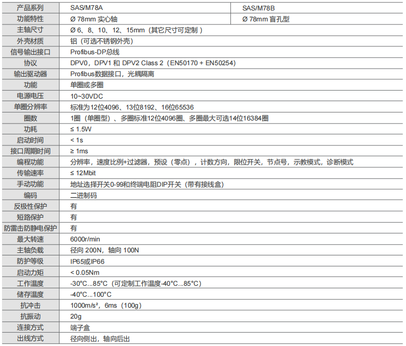 保證產(chǎn)品每個元器件的百分之百純國產(chǎn)化高精確的磁式感應技術(shù),單圈或多圈編碼器Profibus-DP總線單圈分辨率最高可達19位,多圈圈數(shù)高達14位超強的抗沖擊和抗振動能力、高防護等級:最高IP66具備反短接和短路保護、有效降低安裝錯誤對編碼器造成影響
