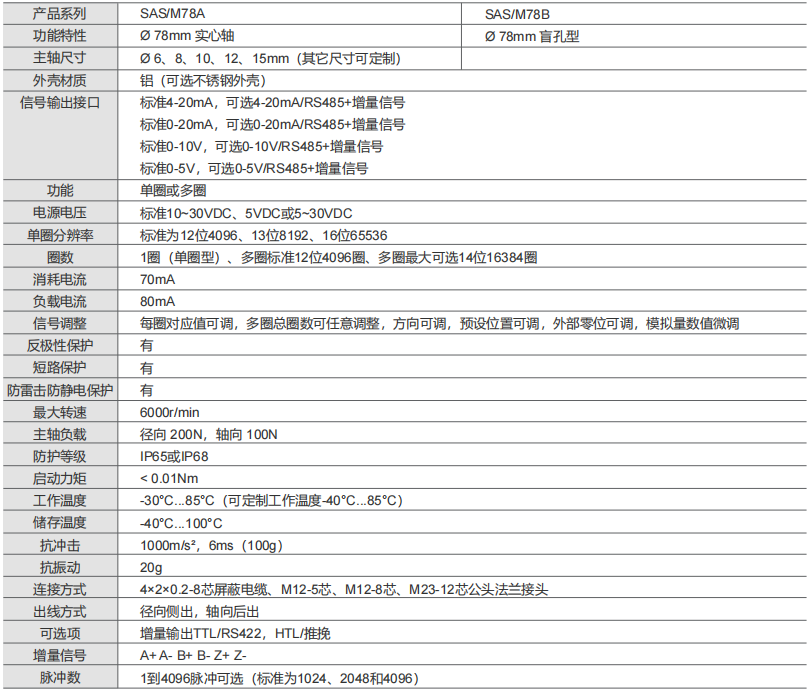 保證產(chǎn)品每個元器件的百分之百純國產(chǎn)化高精確的磁式感應技術,單圈或多圈編碼器模擬量電流4-20mA、0-20mA或電壓0-10V、0-5V輸出可額外增加增量信號TTL或HTL輸出單圈分辨率最高可達16位,多圈圈數(shù)高達14位超強的抗沖擊和抗振動能力具備反短接和短路保護、有效降低安裝錯誤對編碼器造成影響