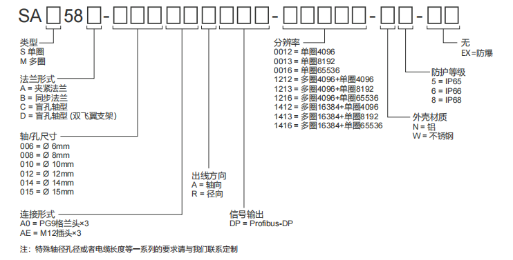 保證產品每個元器件的百分之百純國產化高精確的磁式感應技術,單圈或多圈編碼器Profibus-DP總線單圈分辨率最高可達19位,多圈圈數高達14位超強的抗沖擊和抗振動能力、高防護等級:最高IP66具備反短接和短路保護、有效降低安裝錯誤對編碼器造成影響