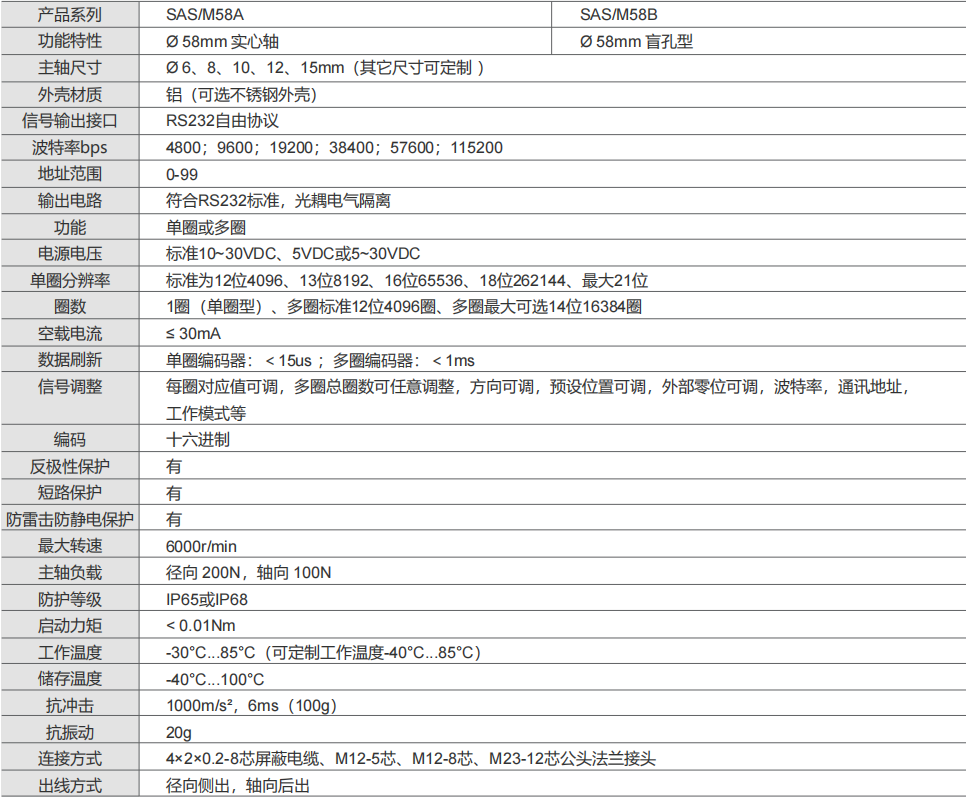 保證產品每個元器件的百分之百純國產化高精確的磁式感應技術,單圈或多圈編碼器RS232自由通訊接口單圈分辨率最高可達21位,多圈圈數高達14位超強的抗沖擊和抗振動能力具備反短接和短路保護、有效降低安裝錯誤對編碼器造成影響