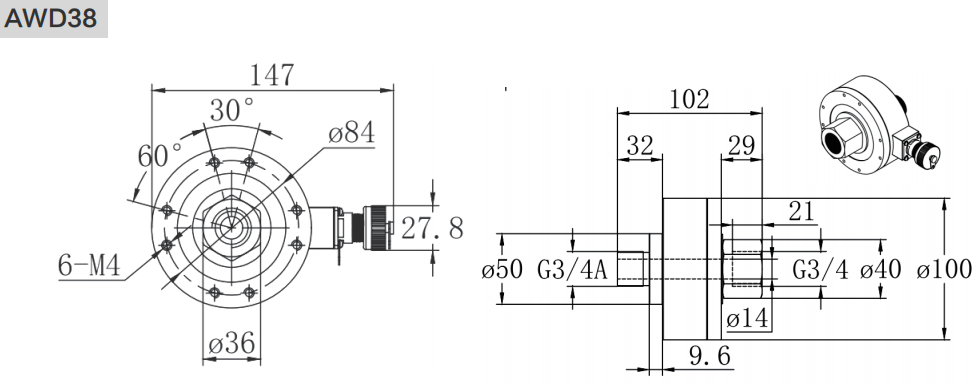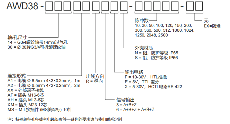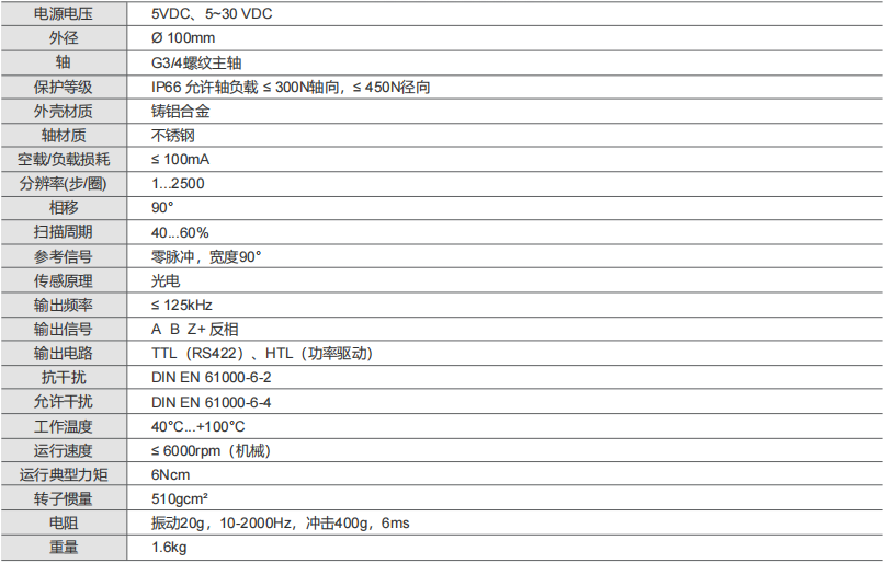 G3/4螺紋可拆卸主軸,現(xiàn)場可更換適配器的螺紋軸,以減少停機時間光電感應(yīng)、雙隔離輸出,可用于冗余.空心過氣孔14mmEX 防爆型編碼器EX II 2G Ex ib IIB T4 Gb堅固的鋁殼·極高的抗振動和沖擊能力·防護程度IP65/IP66·由不銹鋼制成的軸